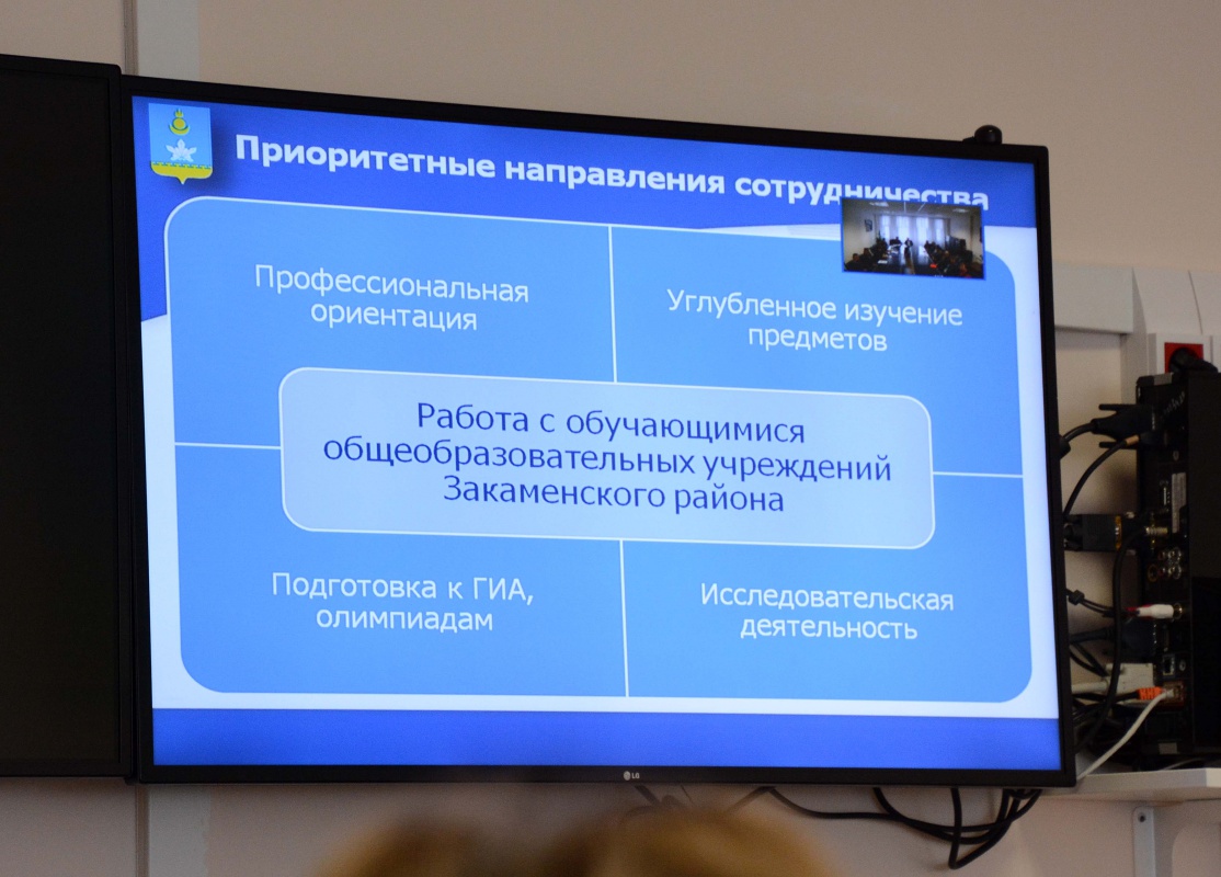 На встрече с руководителями факультетов и институтов начальник районного управления образования С.Д. Намдакова представила презентацию Закаменского района, рассказала о проблемах и перспективах развития социальной сферы, выразила намерения по сотрудничеству.