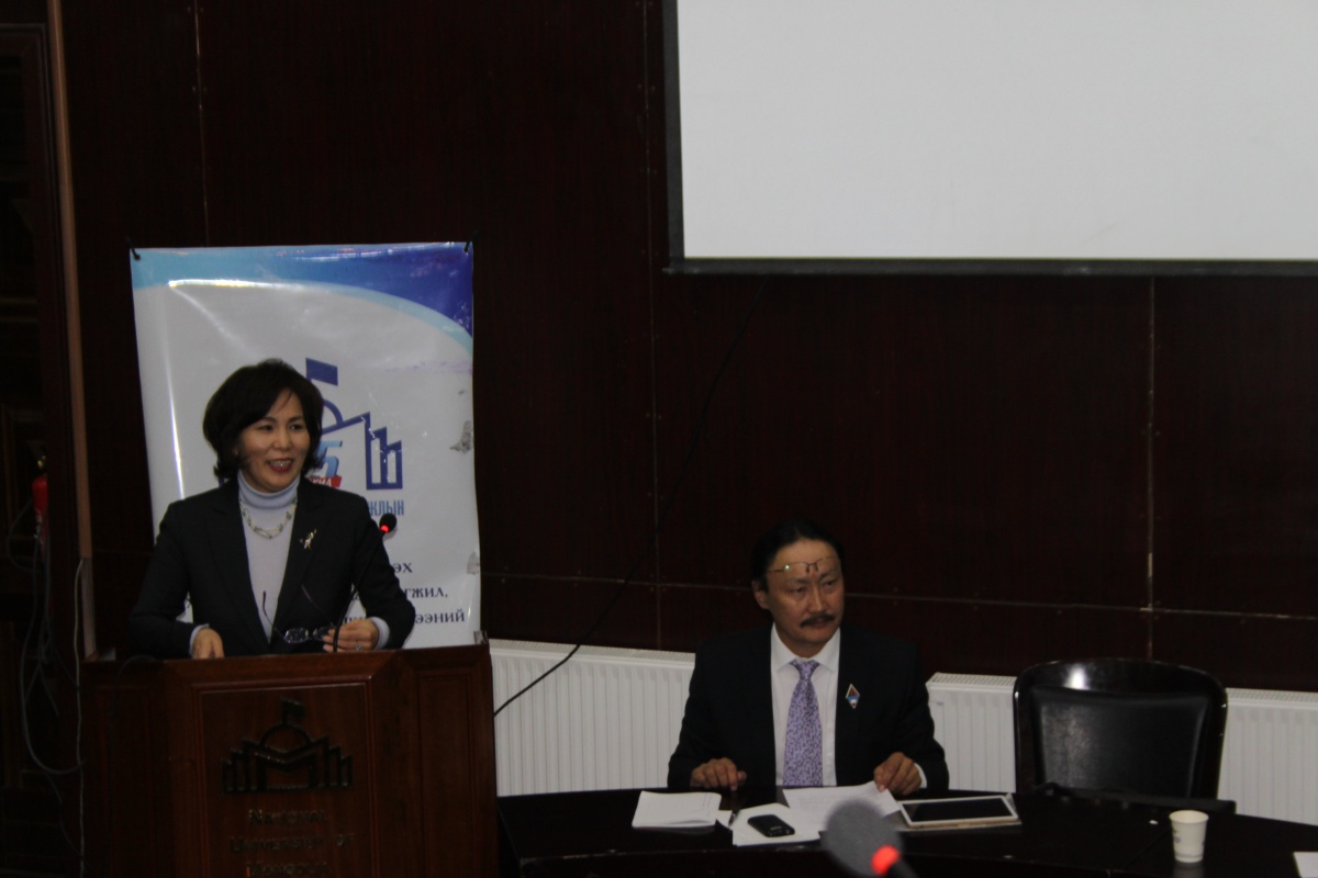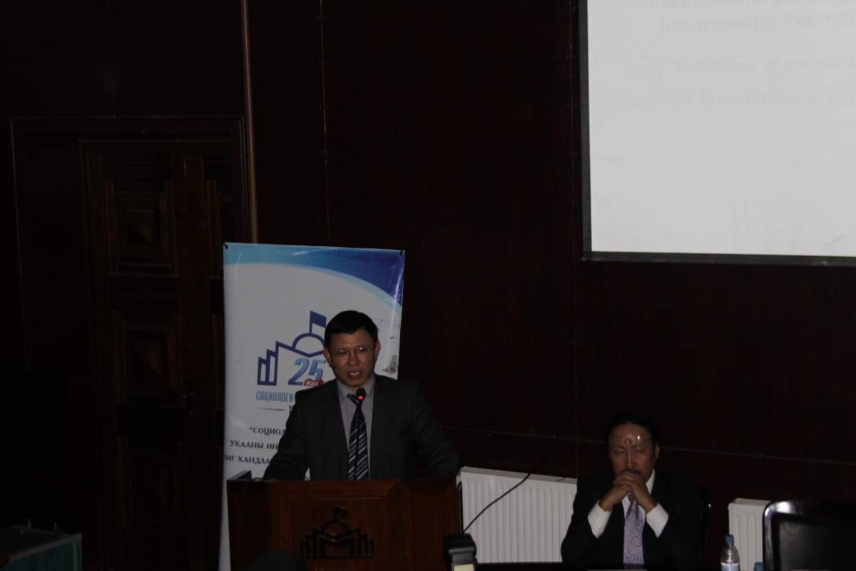 В рамках конференции прошел научный симпозиум ученых из Монголии, Кореи, Китая, России, на котором были рассмотрены вопросы развития и перспектив мировой социологической науки на современном этапе. При этом главное внимание участники конференции уделили результатам социальных и кросс культурных исследований в области социологии, социальной работы и психологии. Доклады преподавателей «Социальное самочувствие занятого населения» (Бадараев Д.Д.), «Перспективы развития социально-демографических процессов сопредельных территорий» (Котоманова О.В.) и «Межкультурные коммуникации как проблема социологической и психологической науки и практики» (Тудупова Т.Ц.) были высоко оценены организаторами конференции Монгольского госуниверситета.