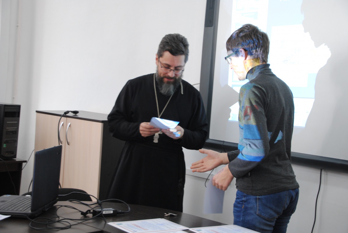 В итоге состоялись обмен мнениями, дискуссии, и представитель епархии А.Л. Шевцов вручил сертификаты участникам и студентам, активно выступившим на круглом столе. Не менее интересными были дискуссии на круглом столе «Союз науки и религии: За или против». Целью круглого стола было представить спектр научных и религиозных вопросов и проследить возможность их симбиоза в мировоззрении современного человека. Прозвучали следующие доклады и обсуждения: доклад священника Георгия Кривосудова «Религиозная и научная картины мира: споры и компромиссы», доклады студентов гр.08640. (3 курс отделения религиоведения и теологии ИФ БГУ).