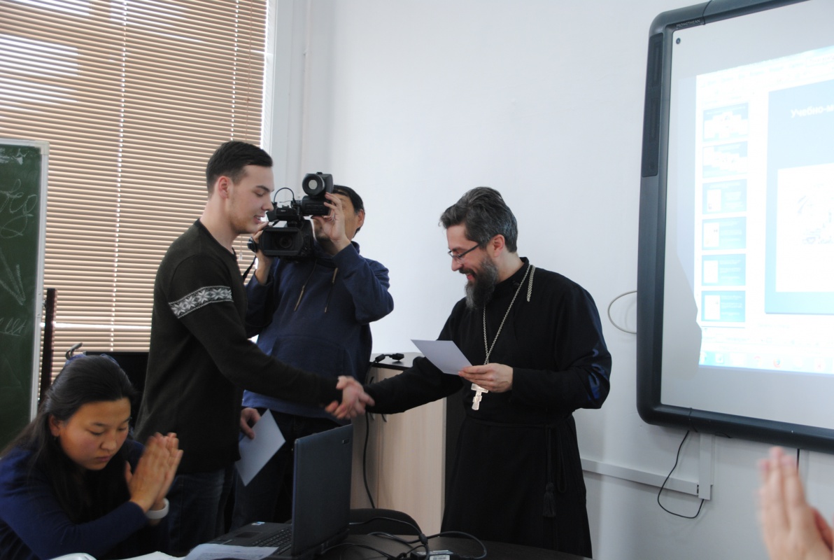 Студент ИФ Сергей Распопов (гр.08140) в своем сообщении обстоятельно проанализировал учебник истории для школьников и акцентировал внимание на проблемных вопросах истории, Эржена Аюшеева выступила с сообщением «Вопросы буддийской философии в программах уроков по обществознанию», Эрдэм Шулунов - с сообщением «Включение аспектов распространении буддизма на территории России в ученике по Истории России», Кичигина Александра - «Включение в учебник Истории России о деятельности духовных академий XIX - нач. XX века».