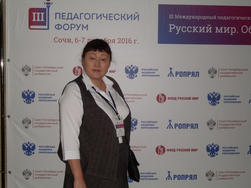 6-7 декабря в Сочи состоялся Международный педагогический форум «Русский мир. Образование будущего», в котором приняла участие Рулиене Л.Н., ст. методист ЦИТиДО, проф. каф. общей педагогики. В рамках конкурса педагогических проектов, который проходил в два этапа (дистанционный - июнь 2016 г., очный - декабрь 2016 г.). Любовь Нимажаповна представляла проект «Разработка и внедрение модели смешанного обучения "Учиться на русском"». По результатам открытого голосования проект от БГУ занял 2-е место. Участники форума посетили образовательный центр "Сириус".