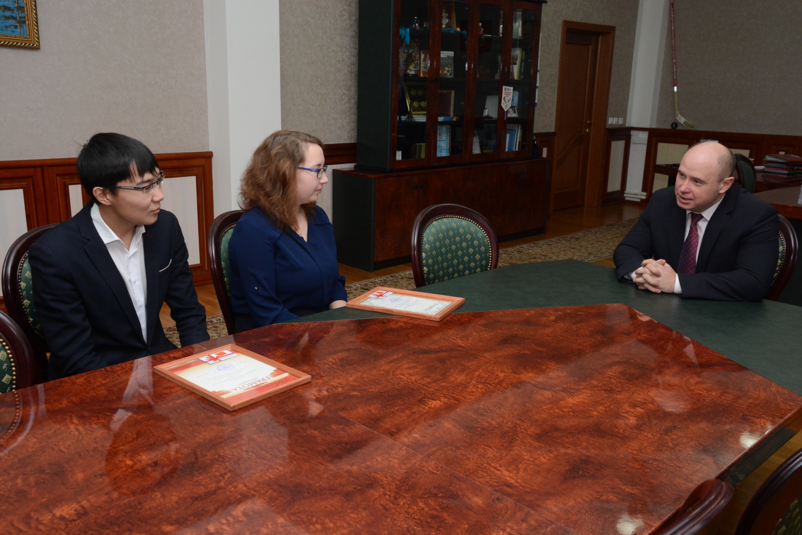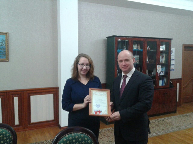 В рамках традиционного конкурса профессионального мастерства "Лучший по профессии", учрежденного кафедрой политологии и социологии при партнерстве Администрации г. Улан-Удэ почетными грамотами и призами были награждены студент группы 08230 Цыренжапов Александр и студентка группы 08530 Патрахина Татьяна. Награды вручил ректор Бурятского государственного университета, д.тех.н., проф. Н.И. Мошкин.