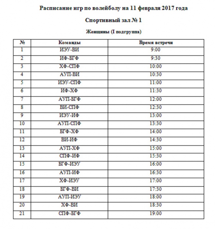 Положение и расписание игр по волейболу Спартакиады среди преподавателей и сотрудников БГУ в 2016-2017 гг.