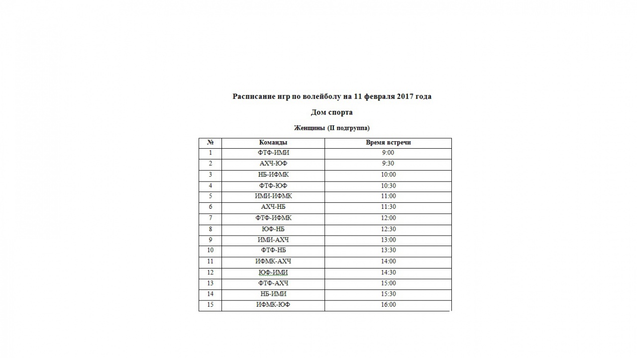 Уважаемые сотрудники! Игры по волейболу состоятся в спорт залах №1 и Доме спорта.
