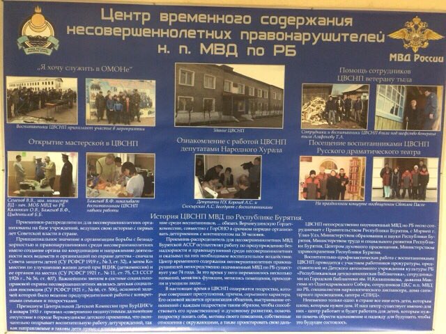 21 марта 2017 г. студенты юридического факультета гр.12131 в рамках изучения дисциплин «Основы ОРД» и «Противодействие криминальной субкультуре» и реализации Договора о взаимном сотрудничестве между БГУ и МВД России по РБ посетили Центр временного содержания несовершеннолетних правонарушителей МВД России по РБ. Начальник ЦВСНП подполковник полиции Палеха С.В. помимо теоретических занятий со студентами выпускного курса, провела экскурсию по территории Центра и ответила на вопросы будущих юристов, подробно остановилась на проблеме подростковой преступности в целом, и в Бурятии в частности.