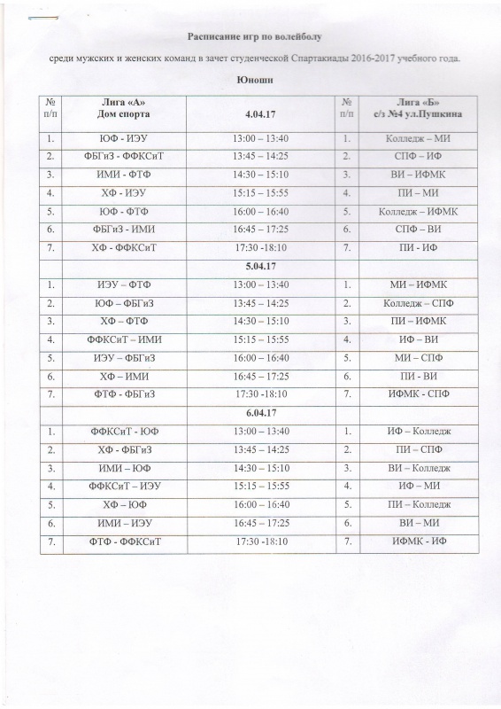 Юноши - 04-06 апреля (Лига "А", дом спорта), (Лига "Б", спорт зал №4 ул.Пушкина);