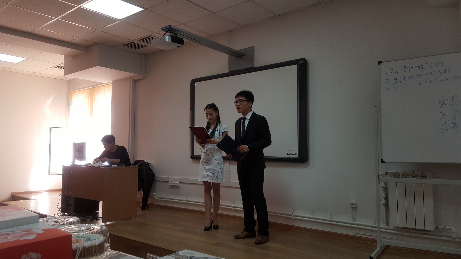 Завершилась Неделя церемонией закрытия: концертом, состоявшим из двух отделений и церемонией торжественного награждения победителей и призеров олимпиад. Во время первого отделения концерта студенты Восточного института и Юридического факультета представили конкурсные творческие номера: песня «朋友» («Друг») от группы 16453б; видеоролик «我们学习汉语» («Мы изучаем китайский язык») от группы 16253; группа 16453а представила мини-фильм – юмористическую пародию на фильм «Сумерки» «汉学家的黄昏» («Сумерки китаиста»), горячо принятый зрителями; далее нас ждала сценка «租房子» («Аренда квартиры») от группы 16452; видеоклип «对不起» («Простите») от группы 16352; короткометражка, посвященная китайской культуре, снятая студентами группы 12230 и технически безупречная викторина от ЗАО «Горыныч», посвященная китайским идиомам и иероглифике, которую организовали студенты гр.16453 – Малофеев Дмитрий, Мезникова Екатерина, Новоселова Виктория.