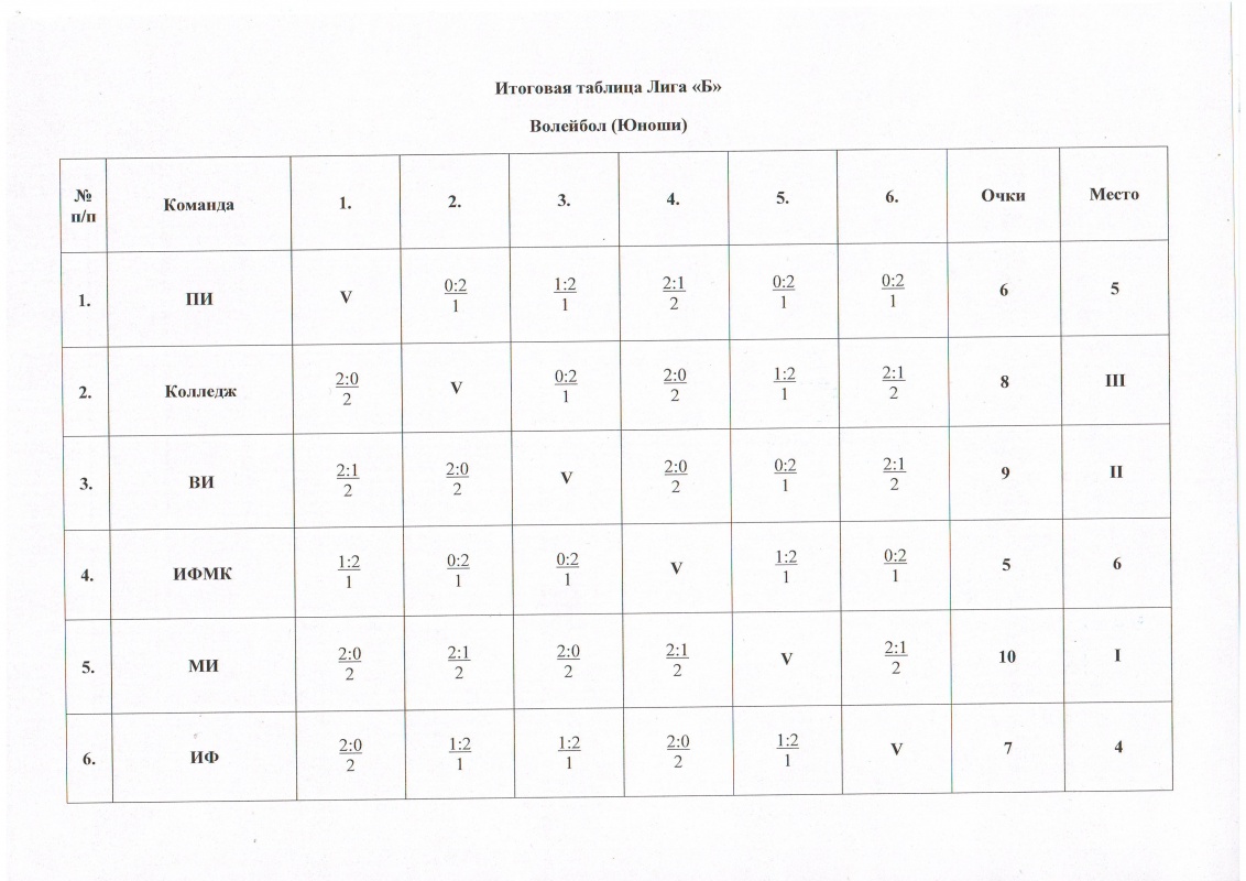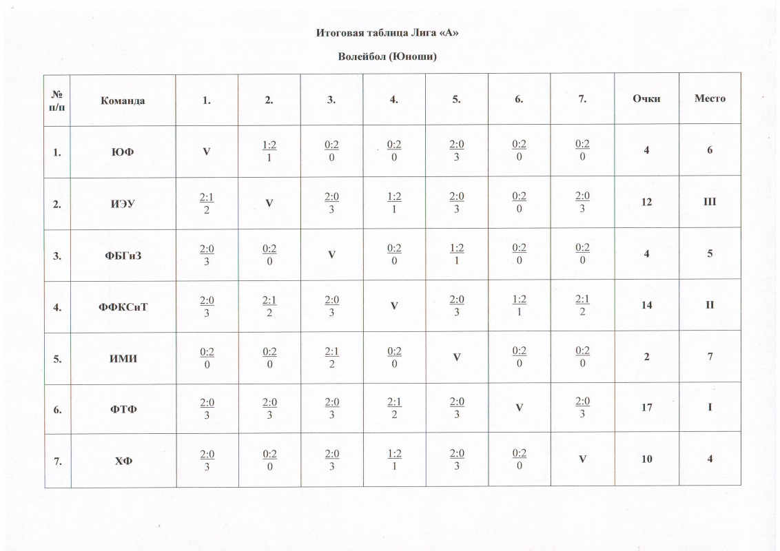 С 4 апреля по 6 апреля в спортивных залах БГУ прошли соревнования по волейболу Лига "А" и Лига "Б" среди юношей. Места распределились следующем образом: