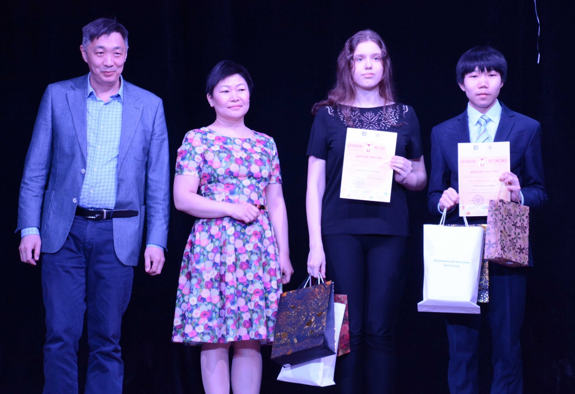 Дипломами Гран-при с присвоением почетных званий «Дангина математики–2017» и «Гэсэр математики–2017» и ценными призами были награждены абсолютный победитель, набравший 80 баллов из возможных восьмидесяти среди 6х классов - ученик школы № 19 Дима Минеев - и 12 девочек и мальчиков, показавших самые высокие результаты по каждому классу. Также участникам, продемонстрировавшим высокие результаты, были вручены дипломы I, II и III степени и благодарственные письма их учителям.