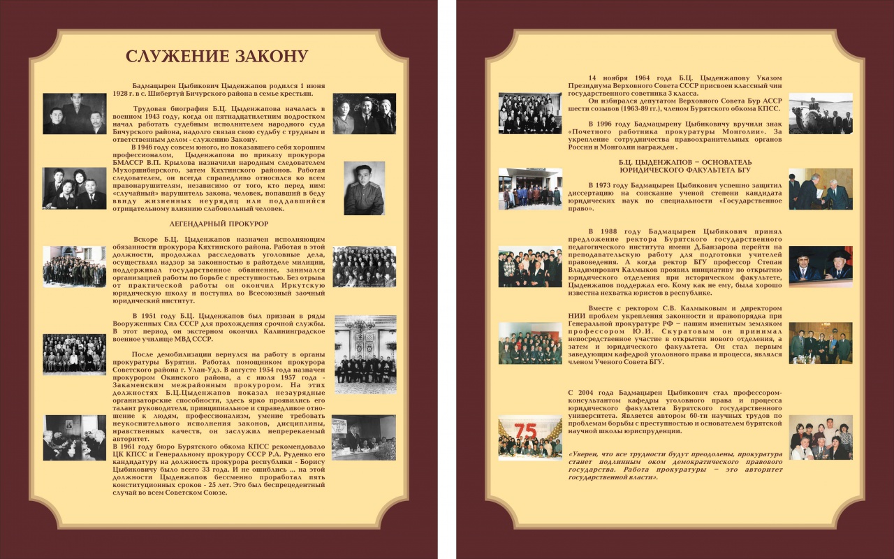 18 мая в зале заседания учёного совета БГУ состоялось открытие XII научно-практической конференции «Криминологические чтения», посвященной памяти одного из основателей юридического факультета Бурятского госуниверситета, прокурора Республики Бурятия (1961-1986 гг.), Заслуженного юриста России и Бурятии, профессора БГУ Бориса Цыбиковича Цыденжапова.