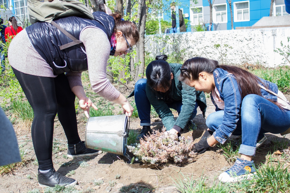 В пятницу 19 мая, студенты - выпускники факультета биологии, географии и землепользования первыми из выпускников приняли участие в экологической акции, заложив «Аллею выпускников».