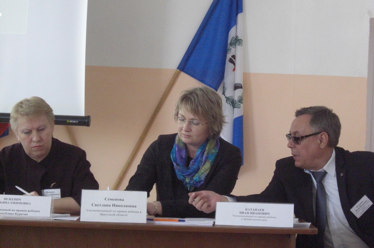 Основными организаторами мероприятия выступили Уполномоченный по правам ребенка в Иркутской области и областное Управление исполнения и наказания. В качестве гостей приняли участие гости из Забайкальского края и внушительная делегации Республики Бурятия, которые представляли профильные Министерства и ведомства, занимающиеся решением различных аспектов вопроса. Это и Министерство образования и науки, социальной защиты, УФСИН, Республиканского агентства по трудоустройству населения, Комиссии по делам несовершеннолетних и защите их прав, а также сотрудник Бурятского госуниверситета - д.п.н., заведующий лабораторией инновационных технологий в области защиты детства СПФ В.Ц. Цыренов.