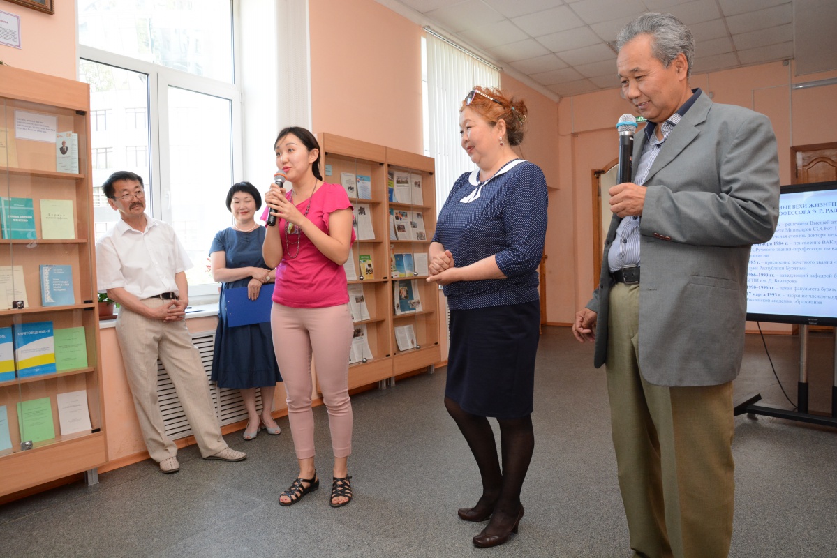 Участники церемонии в своих выступлениях с огромной благодарностью отмечали вклад известного бурятского ученого Эрхито Раднаева в области исследования диалектологии, орфографии, орфоэпии, фонетики бурятского языка, а также его несомненные заслуги в методической науке, в подготовке квалифицированных кадров в области бурятского языка и бурятской литературы.