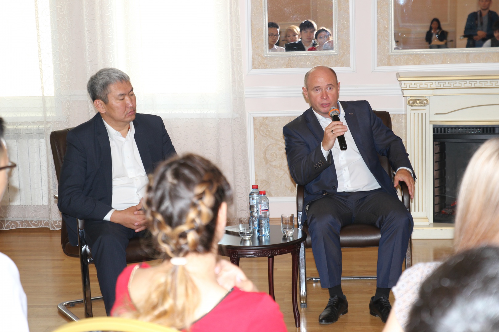 Во встрече приняли участие также и.о.главы республики А.С.Цыденов, и.о. министра образования РБ Б.Б. Жалсанов, ректор БГУ Н. И. Мошкин. Студенты всех четырёх вузов Улан-Удэ смогли побеседовать с гостями. Разговор затронул такие важные и интересные вопросы, как подготовка к ЕГЭ и его проведение, количество бюджетных мест в вузах республики, трудоустройство и открытие военной кафедры в нашем университете и, конечно, аккредитации, которую успешно прошёл минувшим летом БГУ, в частности говорили об участии в аккредитации студентов университета.