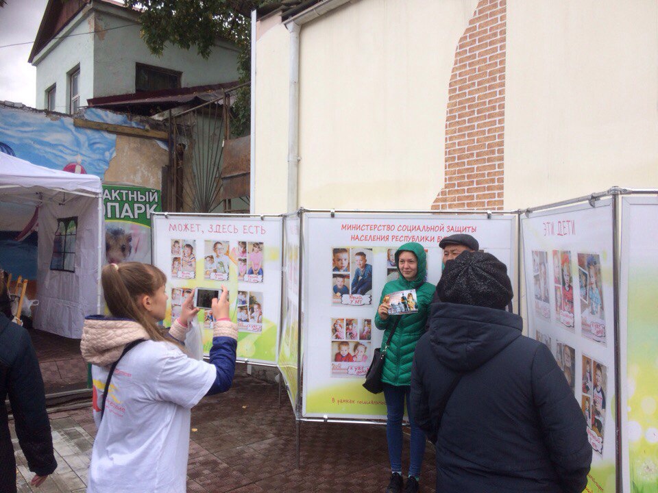 В рамках этой акции студенты призывали жителей города сфотографироваться на фоне фото стенда посвященному детям оставшимся без попечения родителей, с целью помочь им обрести приемную семью, а так же привлечению внимания к проблеме детского сиротства.