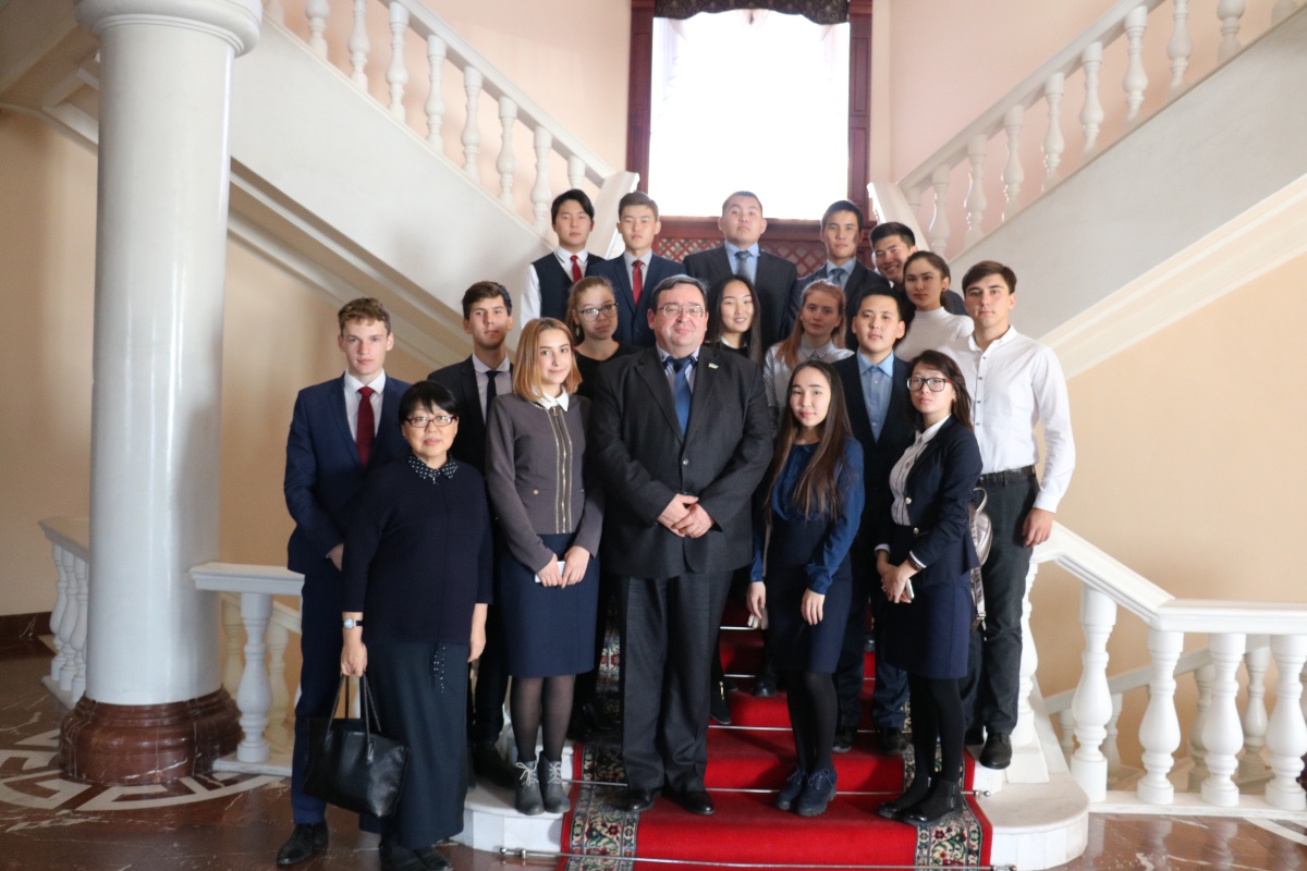 10 октября студенты - политологи первого курса посетили Народный Хурал РБ, где их встретили недавние выпускники кафедры политологии и социологии Исторического факультета - Халбашкеев Андрей Валентинович, главный специалист отдела по работе со СМИ Аппарата НХ РБ и Скосырский Сергей Иванович, консультант Комитета НХ РБ по государственному устройству, МСУ, законности и вопросам государственной службы, которые провели ознакомительную экскурсию для своих младших коллег, познакомили ребят с депутатами НХ и рассказали о специфике работы законодательной ветви власти региона. В рамках экскурсии студенты воочию смогли понаблюдать за работой парламентариев, посетив внеочередную сессию Народного Хурала.