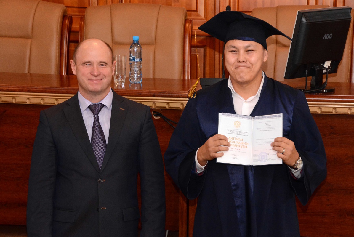 Ректор ФГБОУ ВО «Бурятский государственный университет, доктор технических наук, профессор Николай Ильич Мошкин тепло поприветствовал и поздравил выпускников, научных руководителей аспирантов, пожелал им плодотворного сотрудничества, дальнейших успехов и скорейшей защиты диссертации. "Мне бы очень хотелось, чтобы каждому их Вас вручили диплом кандидата наук в этом же зале на заседании Учёного совета университета" - напутствовал Николай Ильич.