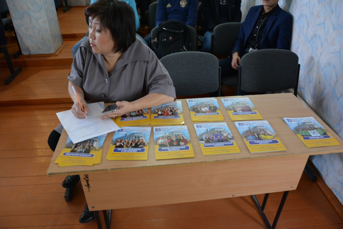 Встреча с выпускниками Багдаринской школы провели директор Педагогического института профессор Дагбаева Н.Ж. и студент магистрант второго курса института Бадмаев Бато. Дети с вниманием и интересом посмотрели рекламный фильм о нашем университете, и задавали много вопросов. Больше всего вопросы касались возможности изучать иностранные языки, и прежде всего, восточные, получения педагогических и медицинских специальностей.