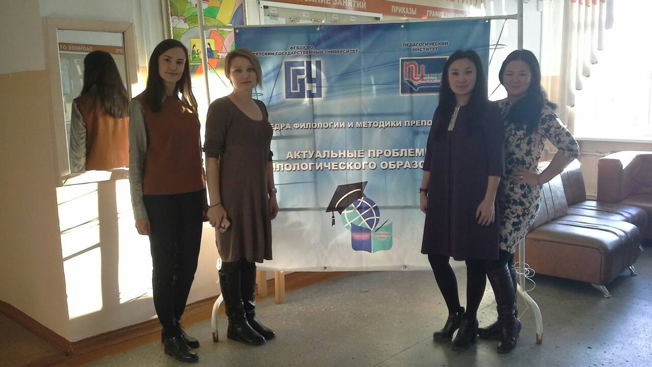Также 17 октября 2017 г. кафедра филологии и методики преподавания Педагогического института в рамках «Недели открытых дверей» провела круглый стол по теме «Актуальные проблемы филологического образования в средней школе». В работе круглого стола приняли участие учителя русского языка и литературы школ Республики Бурятия. В обсуждении приняли активное участие учителя-словесники Сокольникова А.Ф. (МОУ СОШ №42 г. Улан-Удэ); Пластинина Т.В.(заместитель директора МБОУ СОШ «Гусиноозерская гимназия»); Гончикова С.Б. (МОУ СОШ №54 г. Улан-Удэ); Бадмажапова М. Б. (МОУ СОШ №54 г. Улан-Удэ); Вишнякова Т.В. (МОУ СОШ №1 г. Улан-Удэ).