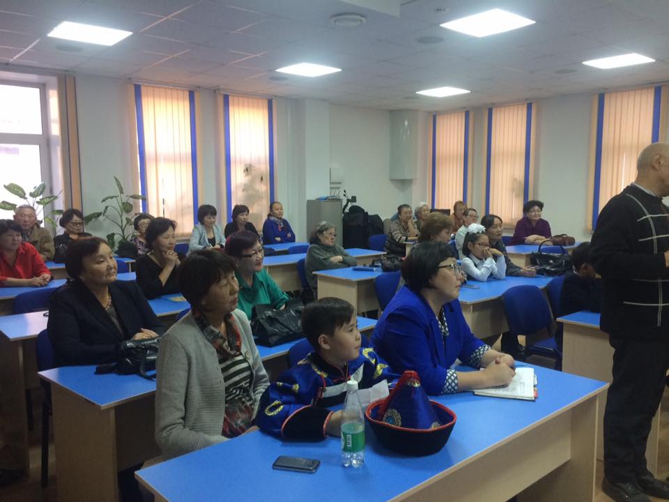 В рамках Недели бурятского языка, посвященной празднованию "Дня бурятского языка" 18 октября в Бурятском государственном университете прошла встреча с известным бурятским писателем Эрдэни Дугаровым. Организаторами выступили Центр развития и сохранения бурятского языка и Институт филологии и массовых коммуникаций БГУ. На мероприятии участвовали ученые, преподаватели-филологи, земляки поэта, общественные деятели, учащиеся Хоринского и Иволгинского районов, студенты и магистранты БГУ. Поэт Эрдэни Дугаров рассказал перед собравшимся о творческой биографии, о своих книгах и и посетовал о трудностях публикации и издания своих книг. Учащиеся Хоринского и Иволгинского районов представили литературно-художественную композицию из произведений поэта. Выступающие - проф. Гармаева С.И., член МОД ВАРК, Ассоциации землячеств РБ Дашиева Н.Т., представитель Хоринского землячества в г. Улан-Удэ Дандарова Н.Д., доц. Халхарова Л.Ц. отметили особый вклад поэта Э. Дугарова в бурятскую литературу, идейно-нравственное значение его книг для детей и юношества. Научной библиотекой БГУ была представлена выставка книг Э.Дугарова. Отметим, что встреча проходила в теплой и дружественной атмосфере. Состоялся интересный и живой диалог с писателем. В завершении мероприятия всем участникам от Центра развития и сохрания бурятского языка были вручены грамоты и сертификаты.