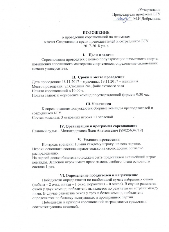 Положения о проведении соревнований по шахматам и настольному теннису в зачет Спартакиады среди преподавателей и сотрудников БГУ