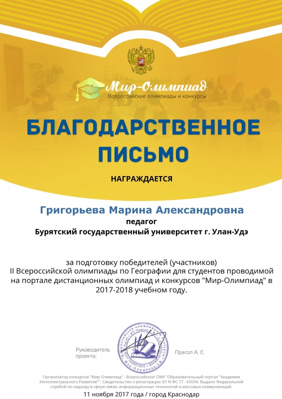 Научный руководитель Григорьева Марина Александровна, к.г.н., доцент кафедры географии и геоэкологии.
