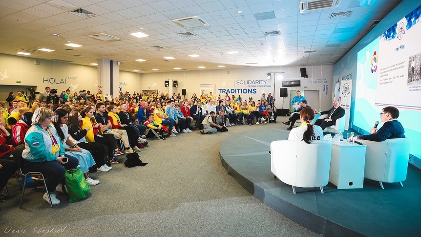 9 дней мы участвовали в программе ВФМС, которая была наполнена мероприятиями с раннего утра до поздней ночи. В течение дня на Фестивале работало более 100 площадок, научно-образовательных и культурных программ, параллельно проходили спортивные и развлекательные мероприятия. Каждый день проходили лекции, панельные дискуссии и встречи, на которых политические лидеры, телеведущие, спортсмены, режиссеры, писатели, шоумены отвечали на вопросы молодёжи.