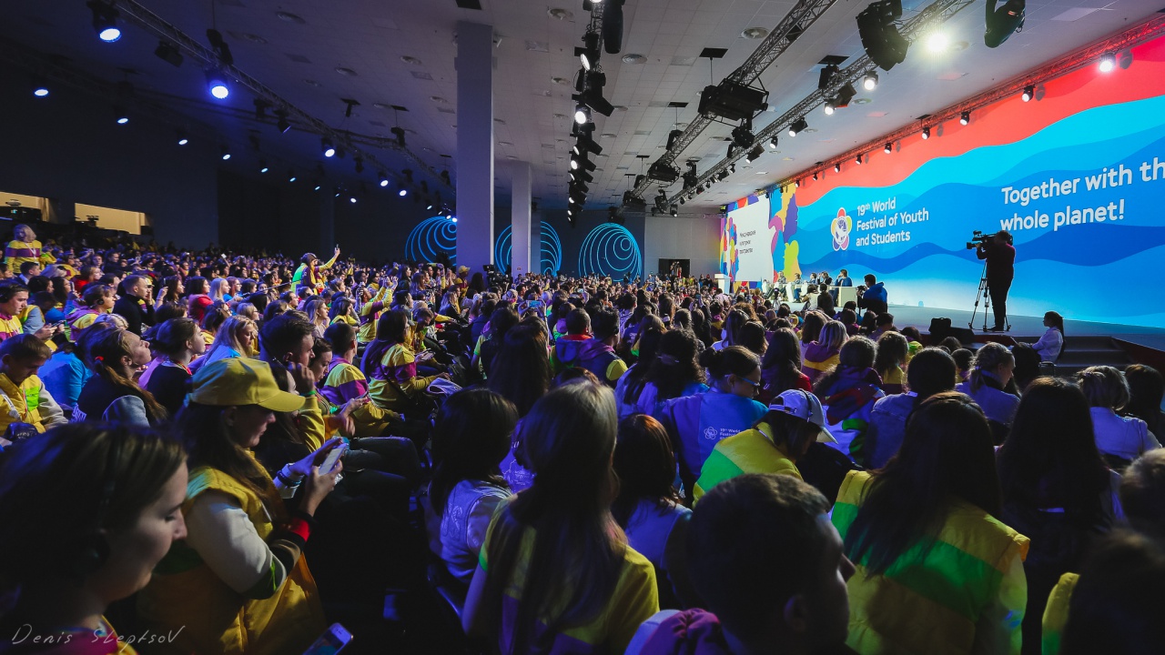 -Together with the whole planet! (Вместе со всей планетой!) С такого лозунга начался Всемирный Фестиваль молодёжи и студентов в Сочи. 25 000 талантливых молодых людей из 185 стран мира собрались в одном месте. Одной из главных целей фестиваля является объединение участников вокруг общечеловеческих ценностей и возможность сделать молодёжь из разных стран ближе друг к другу, несмотря на разные взгляды и вероисповедание.