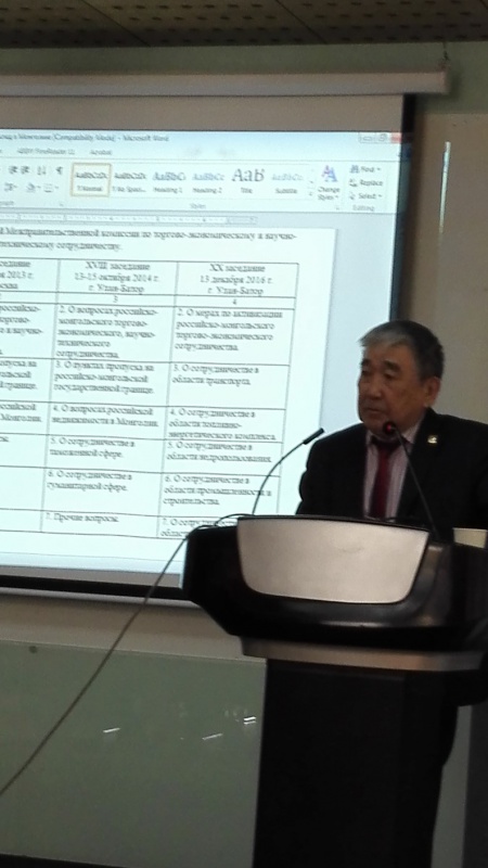 Д.э.н., профессор, в.н.с. Института экономики и управления Атанов Н.И. с научным докладом «Механизм совершенствования финансовых институтов экономического сотрудничества регионов России и Монголии».