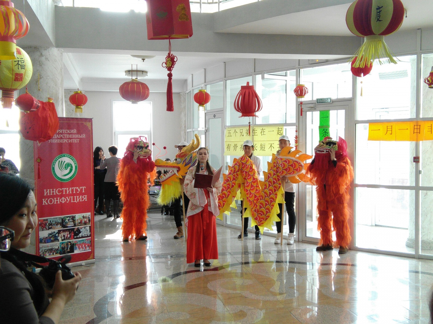 28 февраля в рамках празднования Нового года по восточному календарю в 13.00 в фойе 1 этажа УЛК № 8 БГУ студенты, преподаватели и сотрудники БГУ приняли участие в Празднике фонарей (元宵节 Юаньсяоцзе), организованном Институтом Конфуция.
