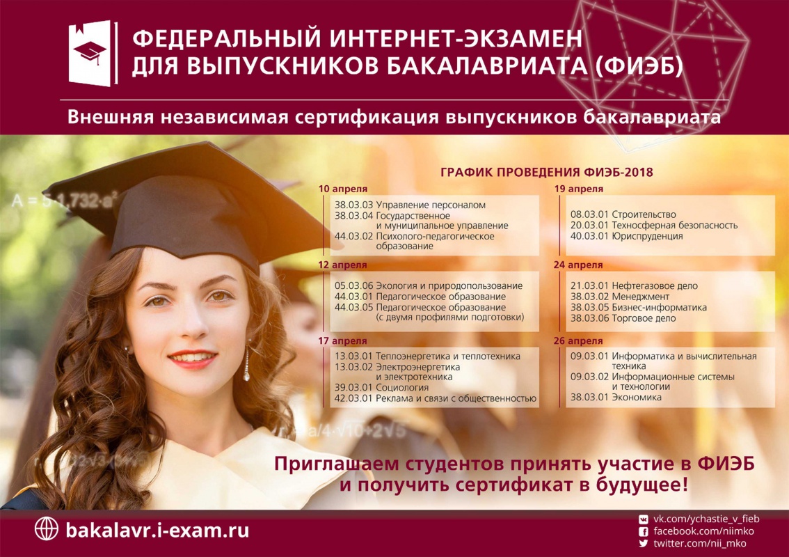 Приглашаем вас принять участие в вебинаре "Федеральный интернет-экзамен для выпускников бакалавриата - экзамен для тех, кто верит в себя и стремится к успеху", который проводит НИИ мониторинга качества образования (г. Йошкар-Ола).