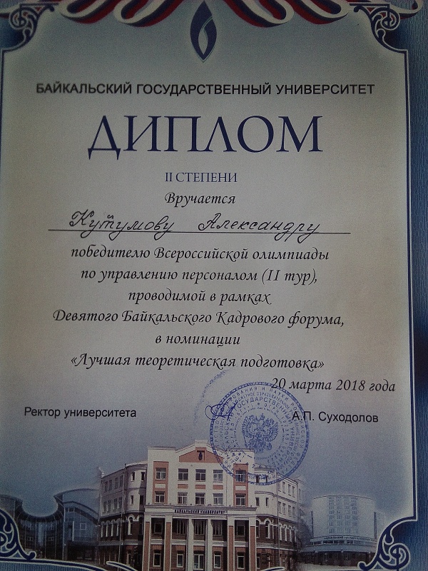 20 марта в стенах Байкальского государственного университета (г. Иркутск) прошла Всероссийская олимпиада по управлению персоналом, проводимая в рамках Девятого Байкальского Кадрового форума среди студентов высших учебных заведений.