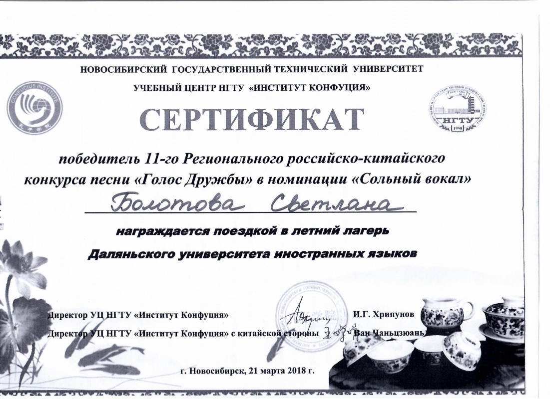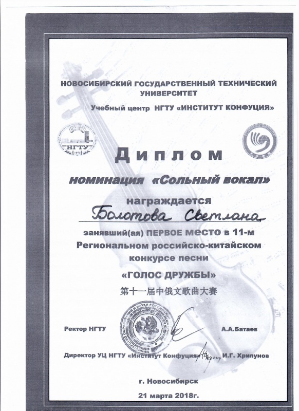 21 марта 2018 года в Новосибирском государственном техническом университете прошел XI Региональный российско-китайский конкурс песни «ГОЛОС ДРУЖБЫ».