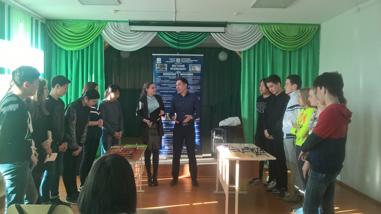 04 апреля 2018 года состоялся выезд делегации БГУ с профориентационной работой в Хоринский и Еравнинский районы. В составе делегации университета – Дамдинов Б.Б. (ФТФ), Дарижапова М.Н. (СПФ), Золтоева О.Ф. и Цырендоржиева Б.Д. (ВИ), Бабудоржиева Э.Д. и Цыренов Д.Д. (ИЭУ), а также студенты ИЭУ – Михайлова Анна и Цыренов Булат.