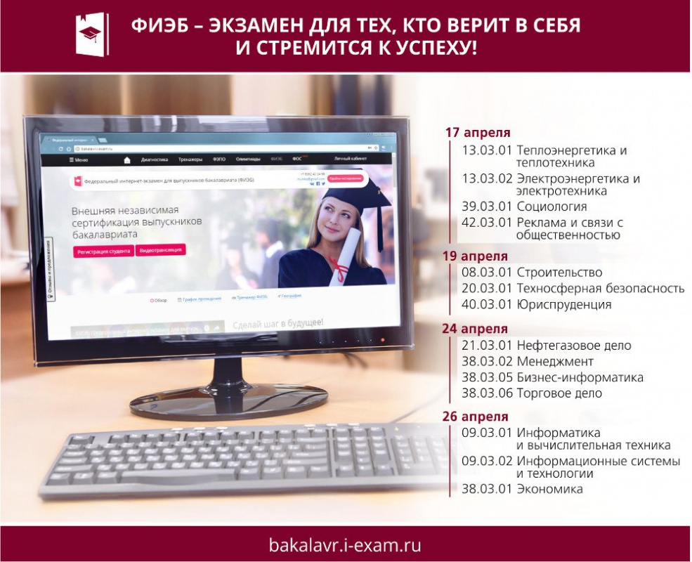 10, 12 апреля в БГУ были проведены первые экзаменационные сеансы Федерального интернет-экзамена для выпускников бакалавриата (ФИЭБ) по направлениям подготовки: