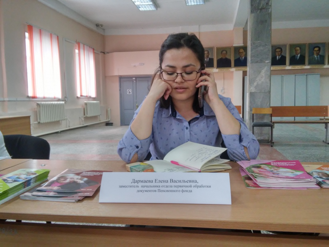 В качестве консультантов выступили: Буянтуева Галина Владимировна, начальник отдела по работе с населением Управления социальной защиты населения по г. Улан-Удэ, Сигаева Арзу Шакировна, главный специалист Управления социальной защиты населения по г. Улан-Удэ, Дармаева Елена Васильевна, заместитель начальника отдела первичной обработки документов Пенсионного Фонда, Булутова Ирина Прокопьевна, главный специалист-эксперт клиентской службы Пенсионного фонда.