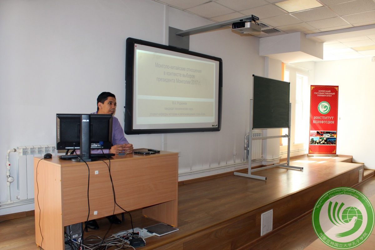 25 мая Институт Конфуция Бурятского государственного университета организовал открытую лекцию на тему "Выборы президента Монголии сквозь призму монголо-китайских отношений", лектором выступил к.полит.н., доцент Владимир Александрович Родионов.