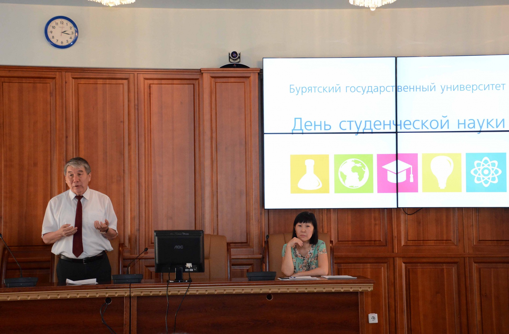 Программу Дня студенческой науки БГУ-2018 продолжили доклады студентов. Результаты своих научных исследований представили аудитории студентка 4 курса химического факультета Иветта Салчак (тема доклада «Загрязнение атмосферного воздуха твердыми выбросами в центральной части Улуг-Хемской котловины, научный руководитель – старший преподаватель кафедры экологии и природопользования Черных Владимир Николаевич) и студент 4 курса ИЭУ Александр Кутумов (тема доклада «Рынок рекрутинговых услуг в Республике Бурятия», научный руководитель – Нагаслаева Ирина Олеговна к.э.н., доцент кафедры управления персоналом).