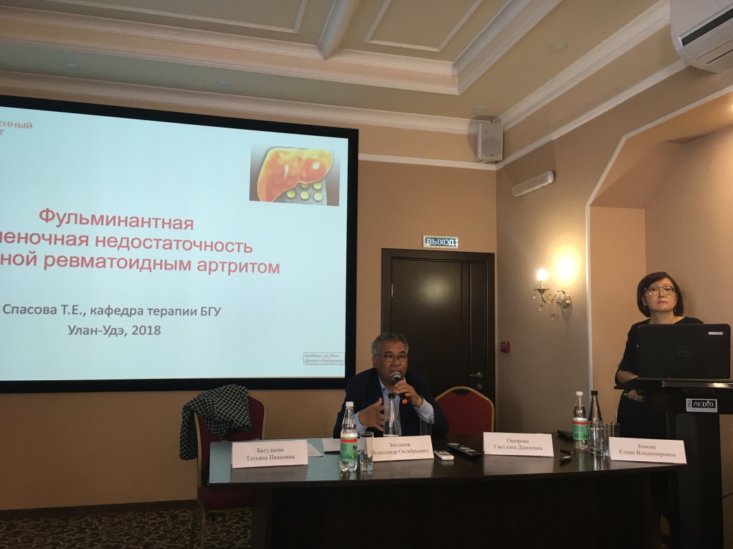 Прозвучали на конференции и доклады практикующих врачей – заведующей клинико-диагностической лабораторией РКБ им. Н.А. Семашко, к.м.н. Мункуевой Д.М., главного внештатного ревматолога МЗ РБ, заведующей ревматологическим отделением ОКБ на ст. Улан-Удэ, к.м.н. Павловой А.Б., а также сотрудников медицинского института Бурятского государственного университета – заведующей кафедрой терапии к.м.н., доцента Батудаевой Т.И. и к.м.н., доцента кафедры терапии Спасовой Т.Е.
