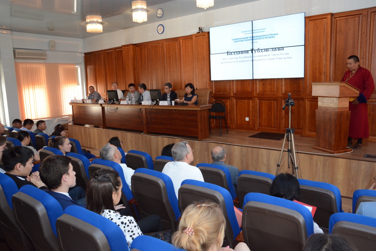 Пленарное заседание состоялось 28 июня в Зале заседаний Ученого совета БГУ. С приветственным словом выступили пресс-секретарь Буддийской традиционной Сангхи России, преподаватель Буддийского университета «Даши Чойнхорлин» Балданов Тубдэн-лама, проректор по научно-исследовательской работе БГУ, д-р хим. наук, доцент Хахинов Вячеслав Викторович, начальник Института исполнения судебных решений Университета правоохранительной службы при Министерстве юстиции Монголии, д-р наук (PhD), доцент Гантулга Наваан, генеральный секретарь Ассоциации сравнительного правоведения КНР, председатель Научно-исследовательского института сравнительного правоведения Политико-юридического университета КНР, д-р юр. наук, профессор Ван Чжихуа, профессор кафедры криминалистики МГУ, заслуженный профессор МГУ, заслуженный юрист РСФСР, заслуженный деятель науки РСФСР, д-р юр. наук, профессор Колдин Валентин Яковлевич, декан юридического факультета БГУ, канд. юр. наук, доцент Раднаева Эльвира Львовна.