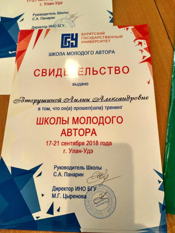 Слушателям, успешно выполнившим учебную программу, было выдано свидетельство участника Школы молодого автора и удостоверение о краткосрочном повышении квалификации (36 часов).