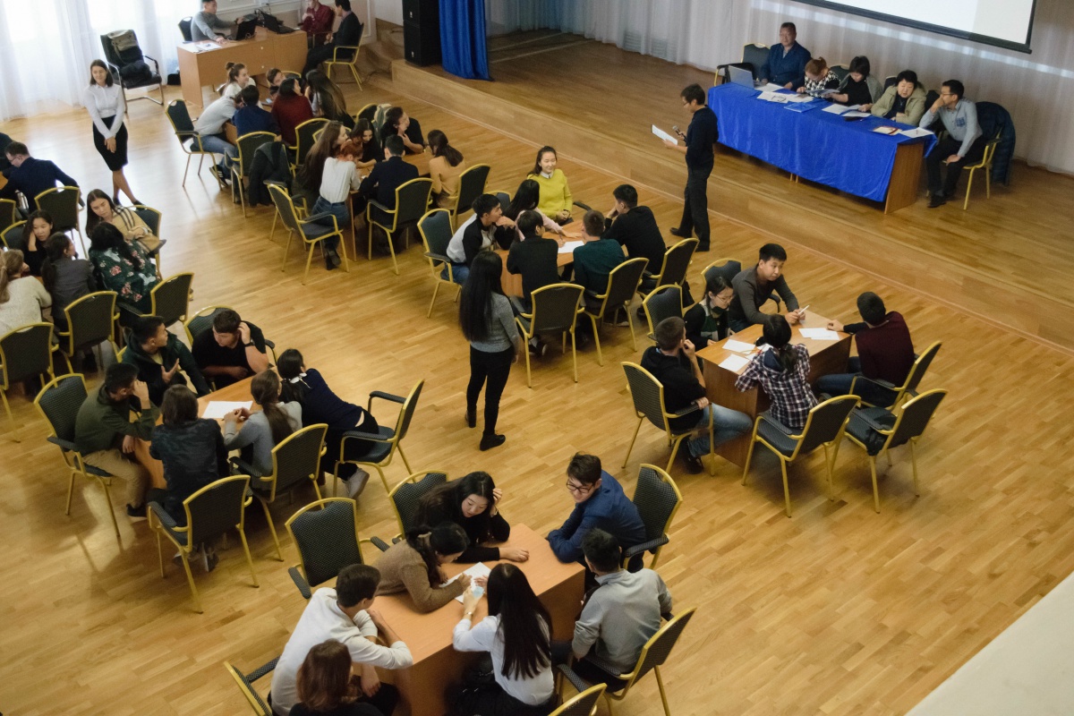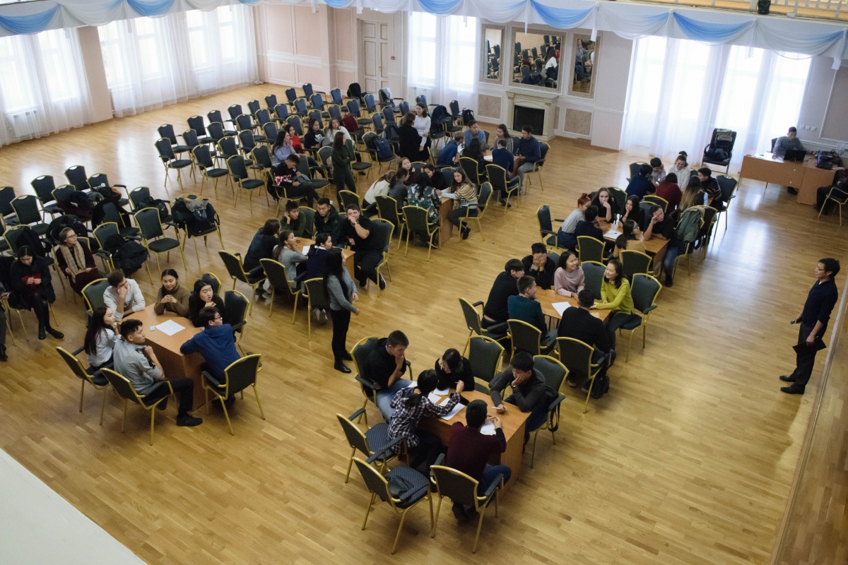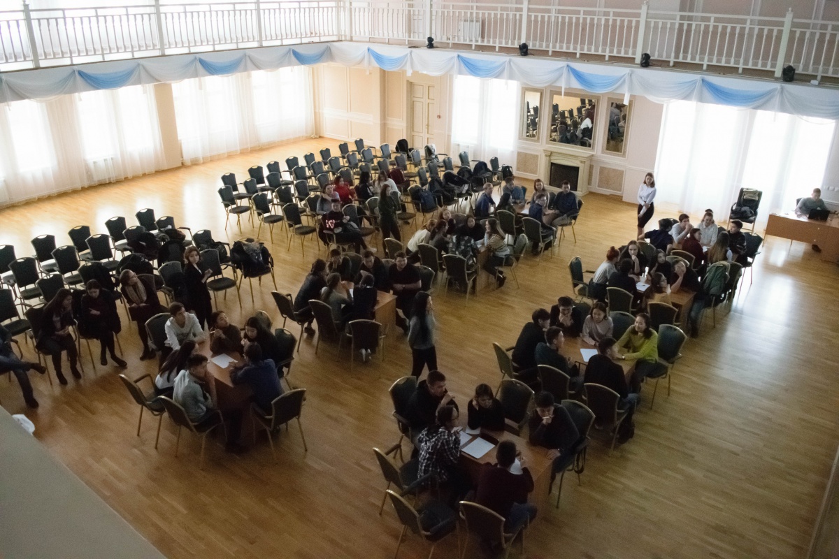 27 сентября в бальном зале БГУ кафедра теории и истории права и государства провела интеллектуальную игру "Что?Где?Когда?" для студентов первого курса бакалавриата и магистратуры юридического факультета БГУ.