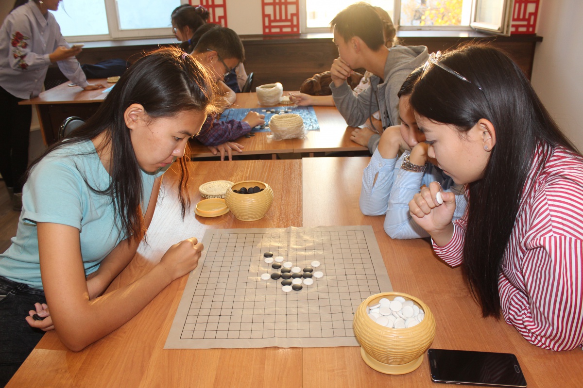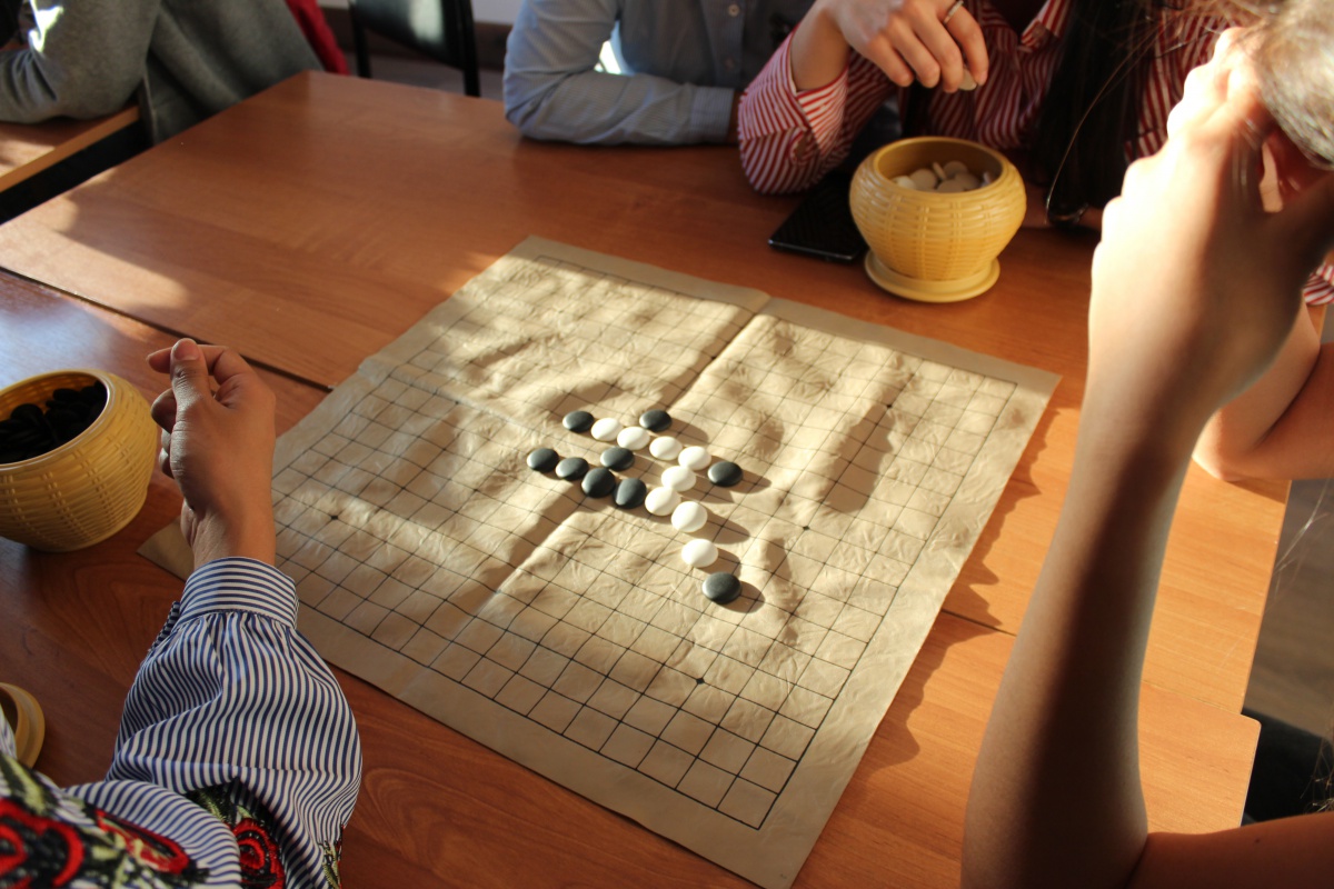 И уже сегодня прошло первое заседание нашего клуба! Мы играли в китайские облавные шашки 五子棋 (уцзыци)! Полтора часа пролетело незаметно!
