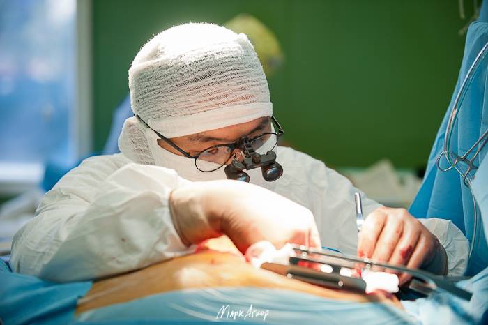 Сначала травматологи соединили и зафиксировали кости плеча, ножами картофелекопалки срезало мышцы и кожу руки под основания, но от плеча остался небольшой кусок кости длиной 6 см. Дальше за дело взялся опытный сердечно-сосудистый хирург Булат Раднабазырович. Сначала он соединил плечевую артерию, где произошел диастаз - не хватало 5 см, для этого ему пришлось нарастить небольшой участок артерии кусочком вены, взятой с правой ноги. После соединения артерии кровь пошла по руке и стало видно какие вены можно соединить. Далее нейрохирурги начали сшивать поврежденные нервы. Врачи в течение пяти часов боролись за то, чтобы восстановить его руку.