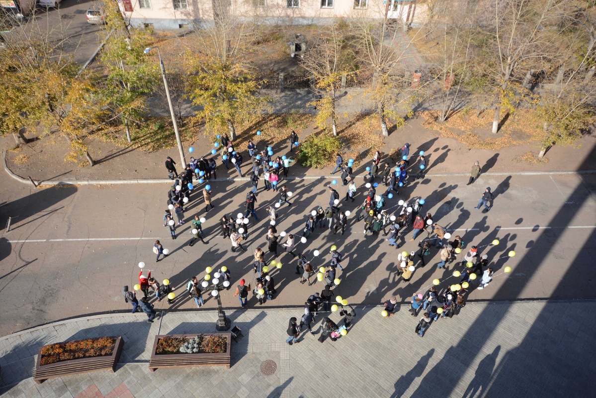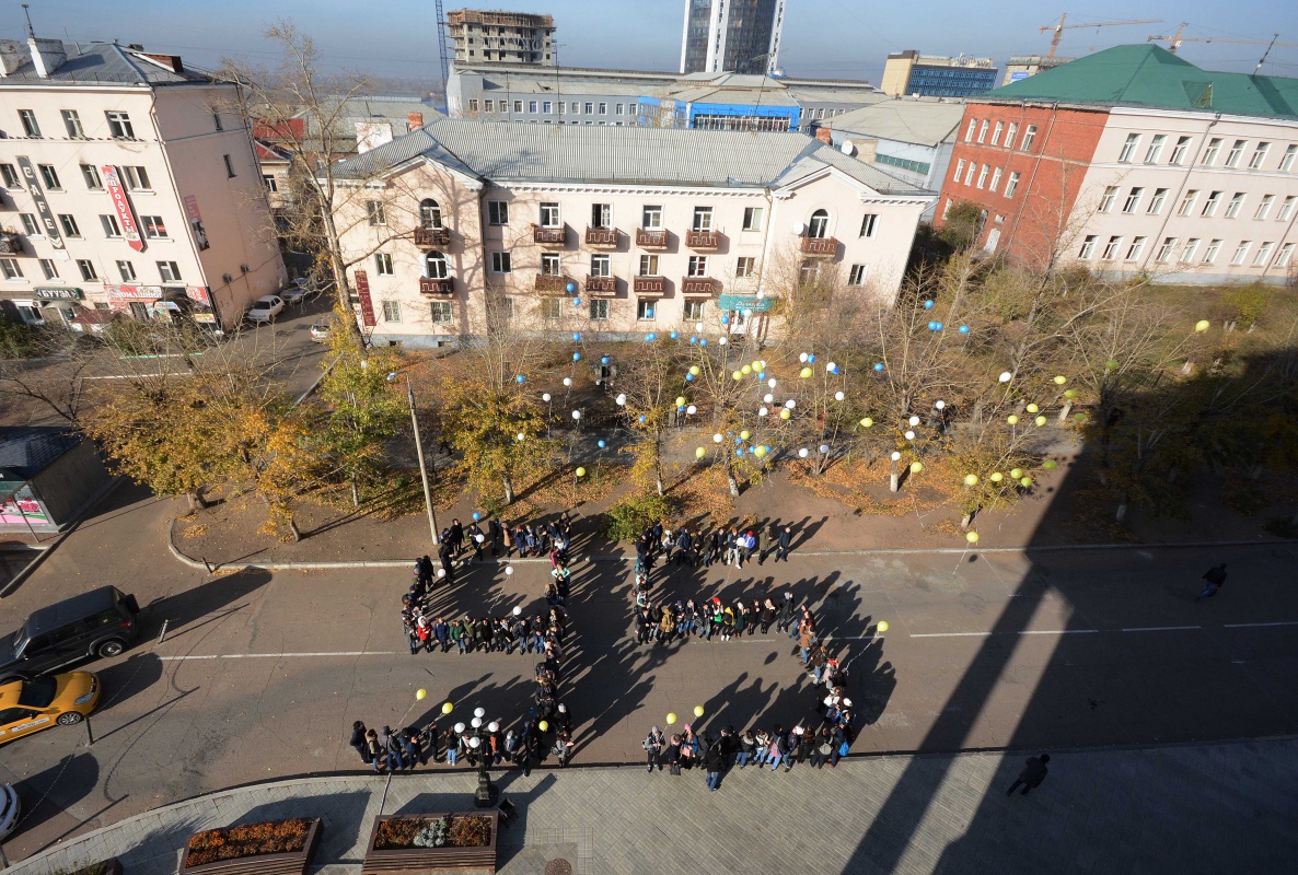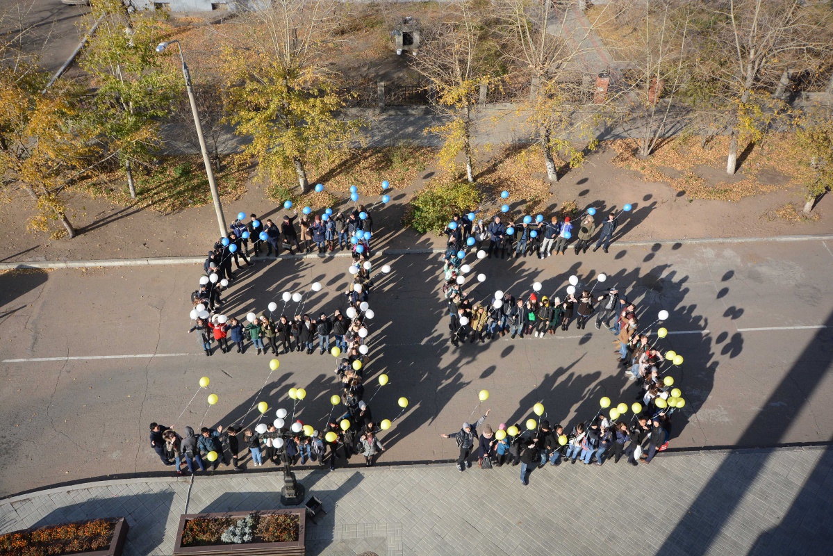 Участие в организации и проведении приняли 95 студентов 1-4 курсов, которые выстроили цифру 95 в цветовой гамме Флага Республики Бурятия.