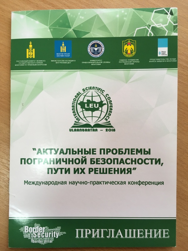 В этом году на международной научно-практической конференции Университета правоохранительной службы Монголии «Актуальные проблемы пограничной безопасности, пути их решения» помимо представителей БГУ состав российской делегации представляли ученые из Московского Университета МВД России, Российского государственного университета им. А.Н. Косыгина, Восточно-Сибирского института МВД России и др.