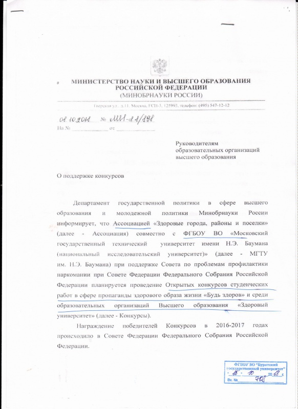 Ассоцияция "Здоровые города, районы и поселки" совмсетно с ФГБОУ ВО "Московский государственный технический университет имени Н.Э. Баумана при поддержке Совета по проблемам профилактики наркомании при Совете Федерации Федерального Собрания Российской Федерации планируется проведение Открытых конкурсов студенческих работ в сфере пропаганды здорового образа жизни "Будь здоров" и среди образовательных организаций высшего образования "Здоровый университет"