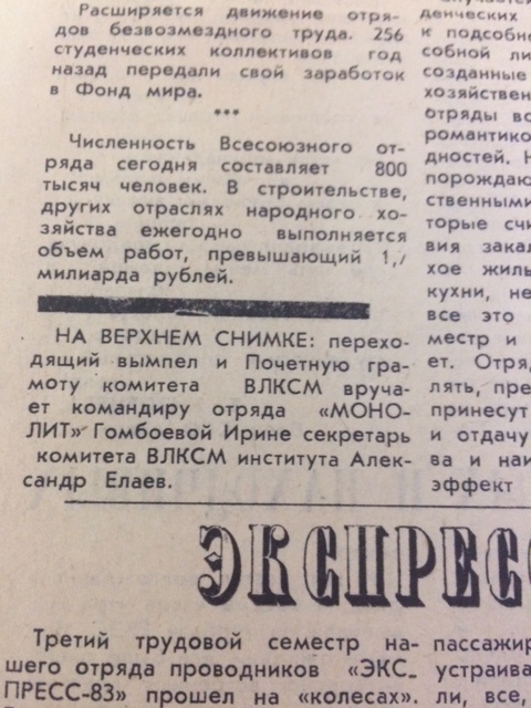 Было отмечено, что институтский комсомол являлся самой активной частью студенческой жизни, школой воспитания гражданственности, общественной активности и настоящей дружбы.