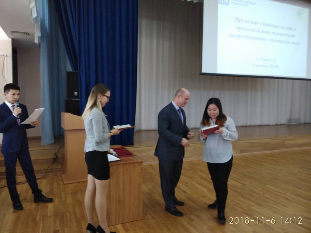 6 ноября прошло вручение свидетельств о прохождении первичной аккредитации специалистов выпускникам Медицинского института 2018 года.