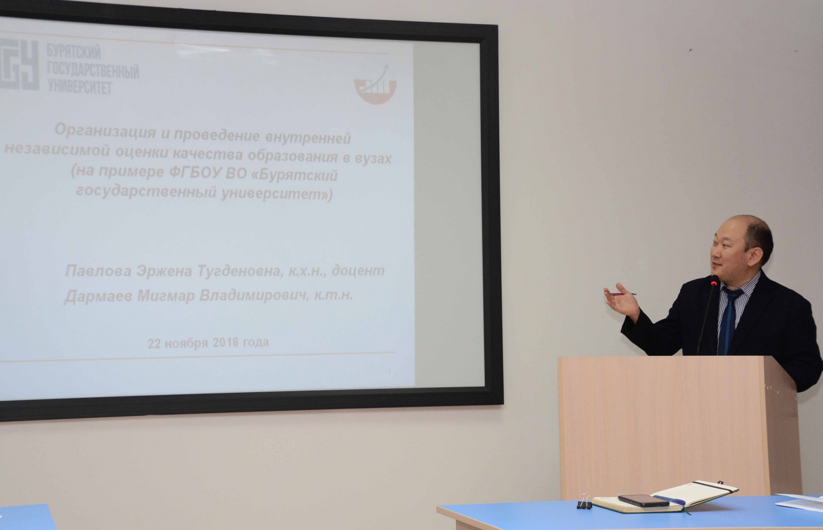 С докладами на пленарном заседании научно-практической конференции выступили: начальник учебно-методического управления Бурятского государственного университета, канд.х.наук, доцент Э.Т.Павлова, начальник отдела методического обеспечения образовательной деятельности учебно-методического управления Бурятского государственного университета, канд.т.наук, ст.преп. М.В.Дармаев, ректор Бурятского республиканского института образовательной политики, д-р пед.наук, профессор В.Ц.Цыренов, начальник отдела управления качеством учебно-методического управления Бурятского государственного университета, канд. пед.наук, доцент С.А.Юн-Хай.
